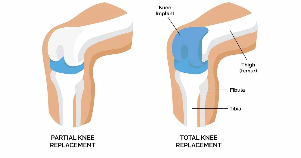 Rehabilitation begins early with walker-assisted walking and exercises to strengthen the joint.